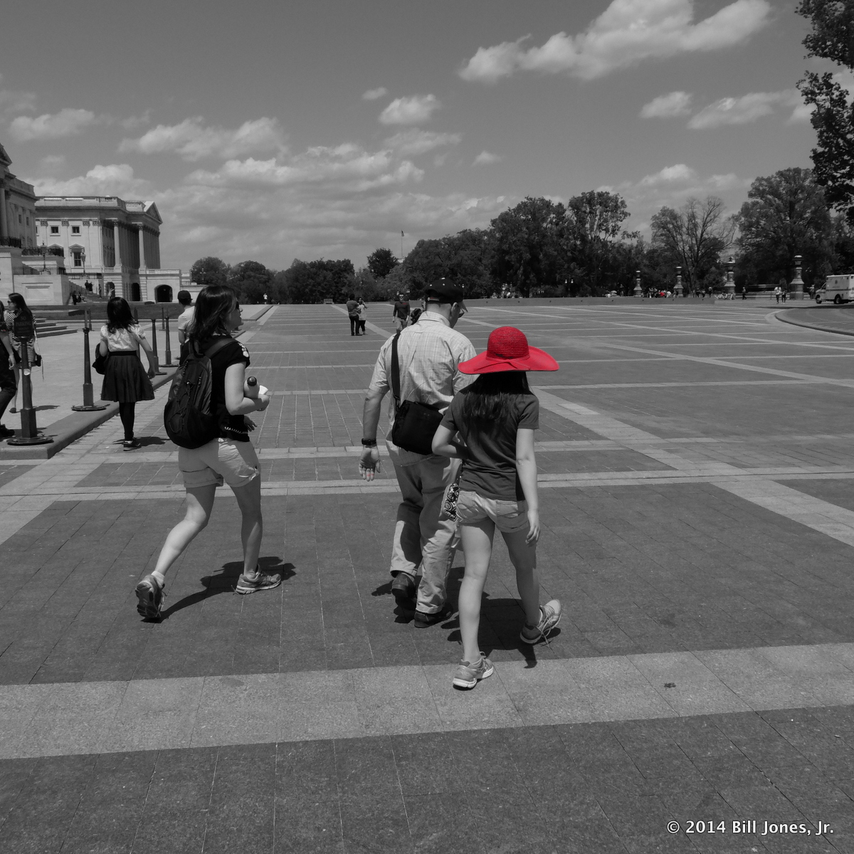 I shot this photo this way, because the girl stood out just from the confident way she wore her daft, red hat.