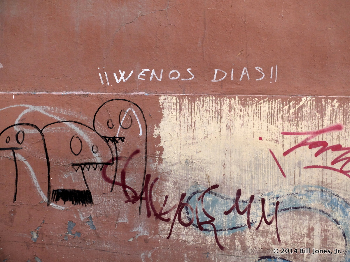 • Thank you! I heard that song for the first time last night, and that section of lyric caught my ear. I wanted to use it, but couldn’t figure out how. Then this morning, I saw your “Weno Dia” post and remembered the graffiti. I like this one, I must admit.