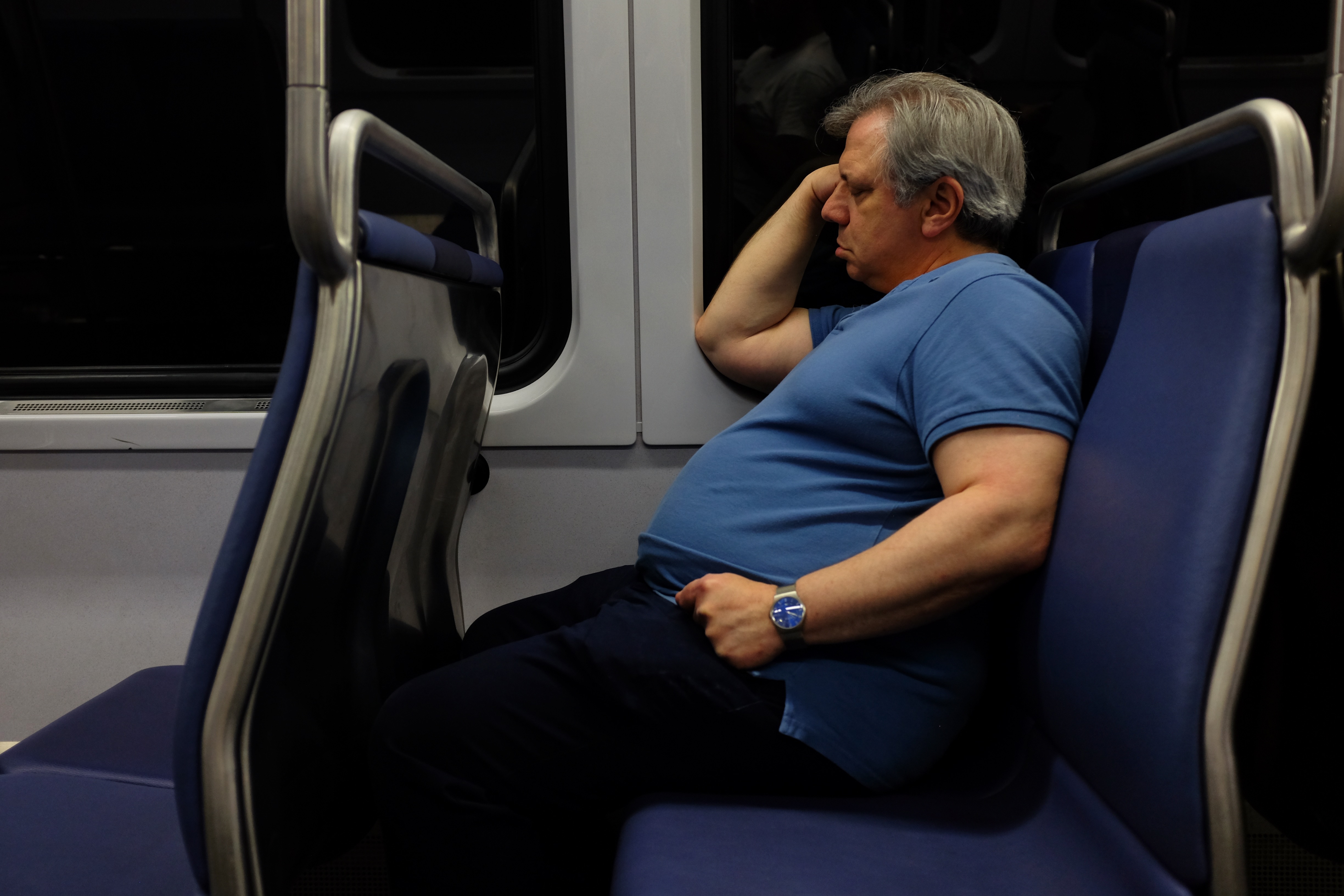 The color version of the sleeping man on the DC Metro (2019), above, his blue shirt is in harmony with the train’s seat and both complement the warm tones of his skin. The color becomes an important part of the composition, and since they compliment each other, color enhances the image. He’s positioned on the right, vertical phi line, so the line travels up to his face, where you still considering his visage.